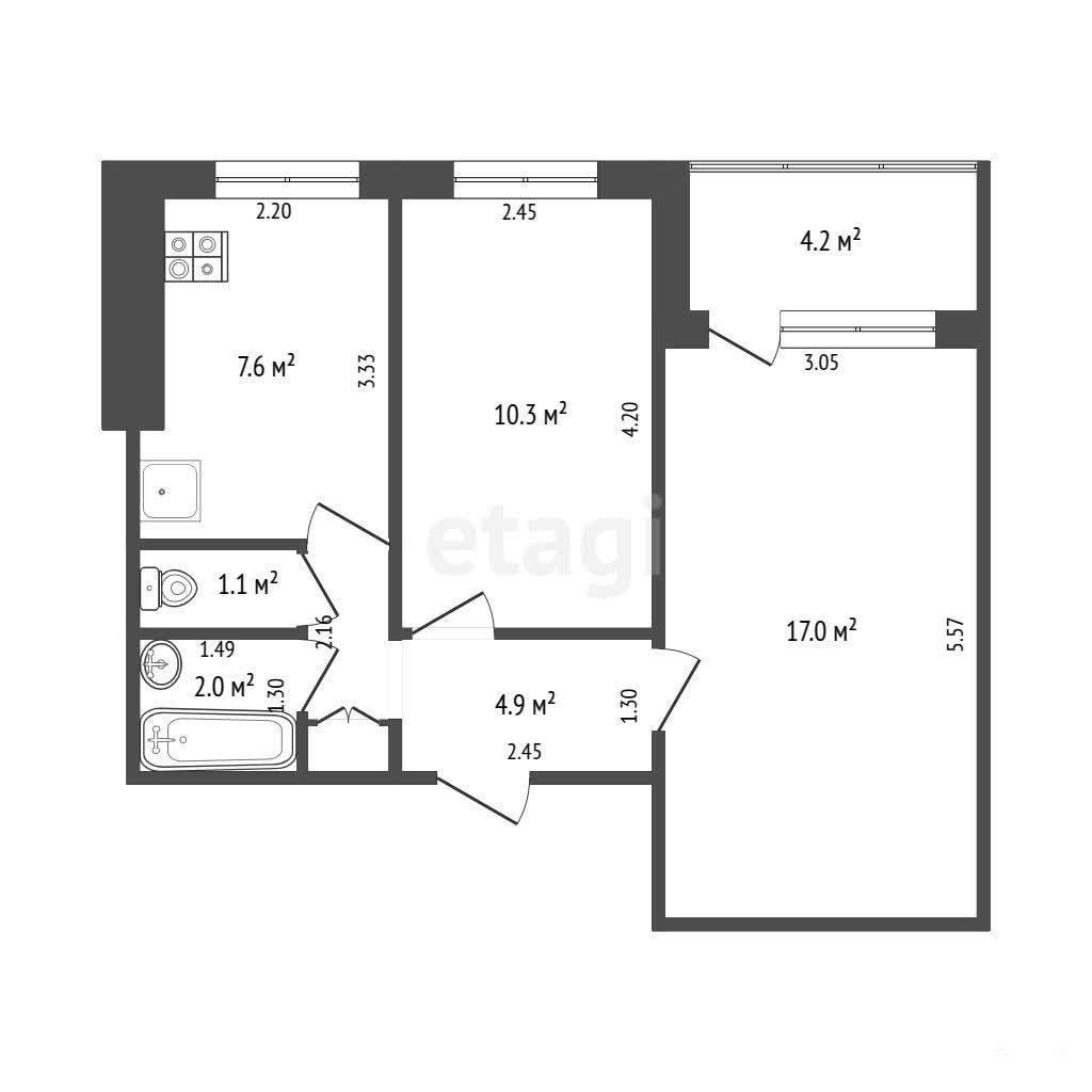 Продается 2-комнатная квартира 42, 9 м2 + лоджия 4, 2 м2.