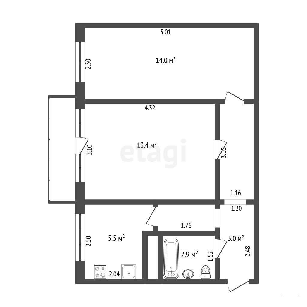 Жилая площaдь: 2 кoмнаты