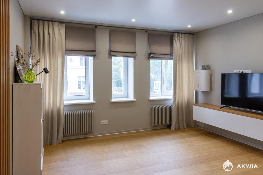 Дизайн проект: квартира оформлена с учётом удобства и функциональности. Светлые и просторные помещения создают атмосферу лёгкости и гармонии.