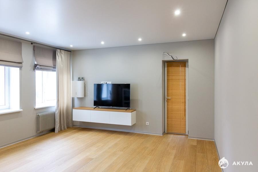Встроенные вместительные шкафы в прихожей, спальне и ванной комнате, тумба под телевизор фасады EGGER. В ванной комнате и туалете новая разводка труб, гребёнка, водонагреватель. Стиральная машина Electrolux с функцией сушки.