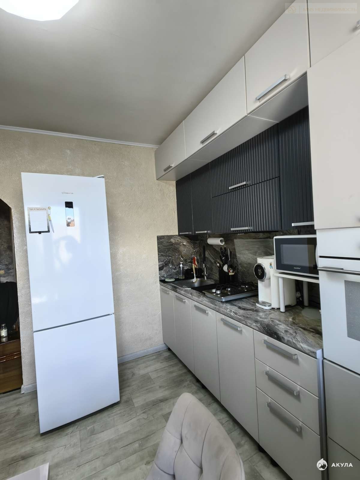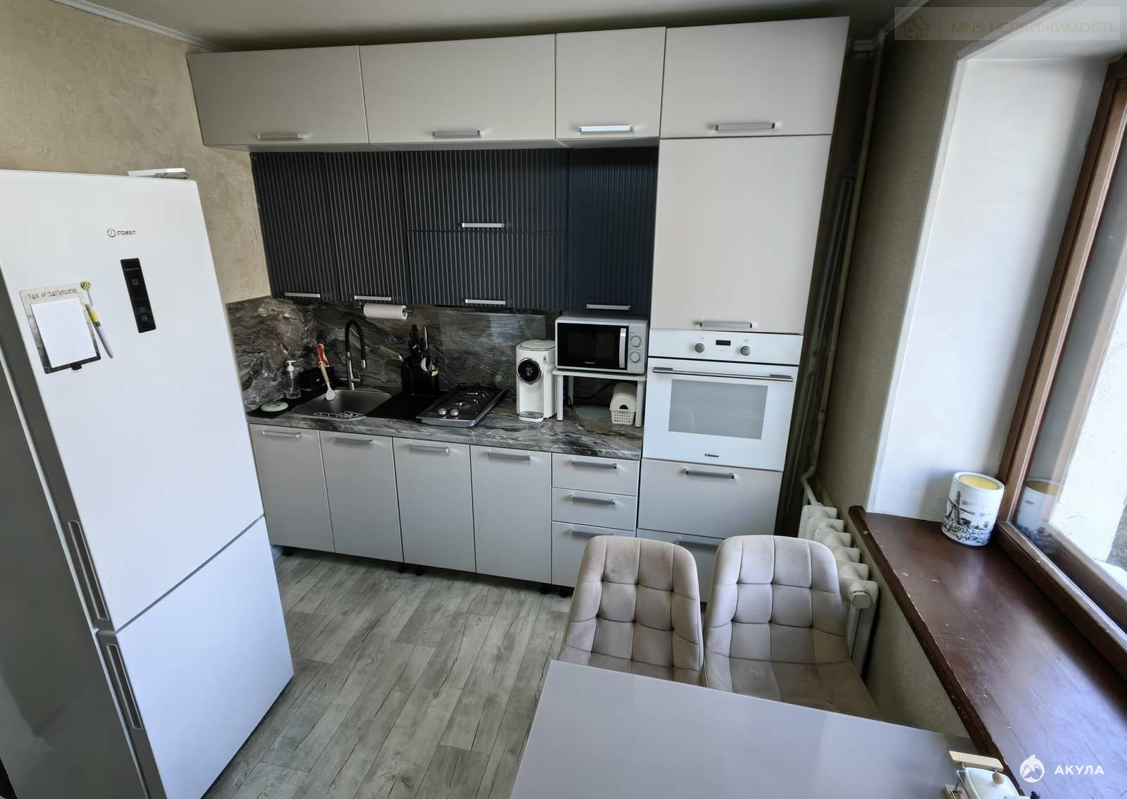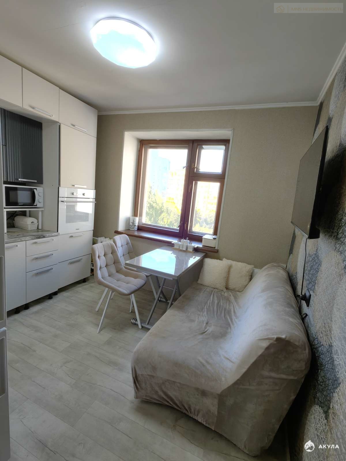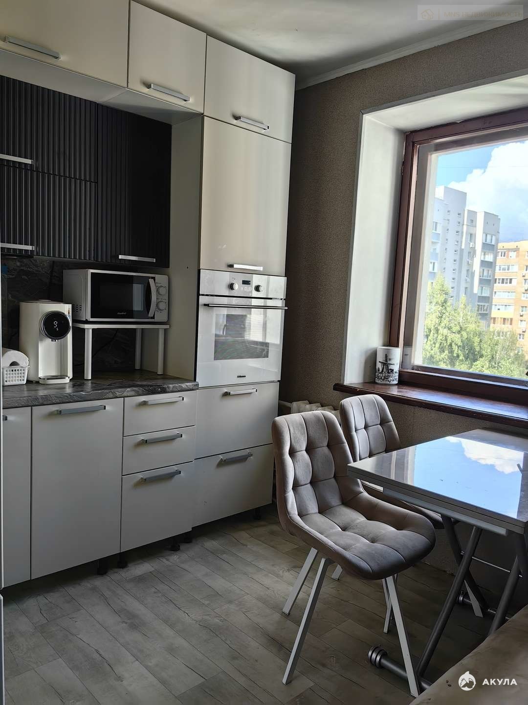 В квартире остается новый кухонный гарнитур, встроенная техника - варочная поверхность, духовой шкаф. Остальная мебель - по договоренности.