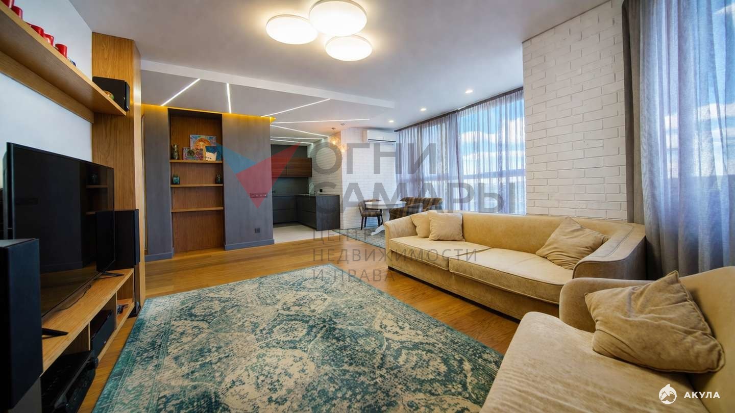 Предлагаем вашему вниманию редкий лот — просторную трехкомнатную квартиру площадью 103, 3 кв. м в одном из самых престижных жилых комплексов премиум-класса — ЖК «Арго». Это не просто квартира, а готовое к комфортному проживанию пространство с безупречным дизайнерским ремонтом и полной готовностью к въезду «под ключ». В квартире реализованы нестандартные дизайнерские решения: установлены высокие межкомнатные двери Волховец (2, 30 м) из натурального шпона, что визуально расширяет пространство и придает помещению статусный вид. Входная группа защищена бронированной дверью Torex . Главная гордость этой квартиры — витражное остекление в зоне кухни-гостиной (36, 3 кв.м.) Панорамный вид на реку Волга и Жигулевские горы создает ощущение бесконечного простора — ключевое преимущество, которое ценится на рынке недвижимости и будет радовать вас ежедневно. Кухонный гарнитур с механизмами плавного закрывания Blum (Австрия). Остается вся встроенная техника, установлена система фильтрации воды. Зона отдыха представлена диваном, раздвижным обеденным столом и мягким кухонным диваном с креслами. Установлен мощный кондиционер Tosot 24. Спальня взрослых (24 кв. м): Просторное светлое помещение. Остается кровать и комод из натурального шпона и система затемнения (шторы блэкаут). Детская комната (15, 6 кв. м) обеспечивает функциональное пространство для двоих детей. Остается тахта с подъемным механизмом, модульный стеллаж IKEA для хранения. Санузел выполнен в современном стиле с использованием надежной сантехники и материалов: - Смесители Grohe. - Безободковый унитаз Gustavsberg (легкость в уходе и гигиена). - Качественные трубы Rehau. Электрика: Проходные выключатели ABB (обеспечивают удобное управление светом по всей квартире). Потолки: Комбинированная система (натяжные и гипсокартон) с усиленной шумоизоляцией по технологии Кнауф. Полы - паркет с натуральным шпоном. Жилой комплекс расположен в точке с идеальной транспортной доступностью и развитой инфраструктурой: - Безопасность и сервис: Видеонаблюдение по периметру, свой консьерж, своя крышная котельная (стабильное горячее водоснабжение, отопление и низкие ком.платежи). - Паркинг: Арендовано одно парковочное место. - Лифты: 4 лифта (2 грузовых и 2 пассажирских) — отсутствие очередей в часы пик. - Благоустройство: Территория оборудована современными спортивной и детской площадками. Рядом с домом: - Храм св. мученицы Татианы. - Загородный парк (5 минут пешком) с удобным спуском к пляжу. - ТЦ «Мега Сити» — через дорогу. - Образовательные учреждения: Университет им. С.П. Королева, Госуниверситет, детские сады №253, 264, 291, 309 «Рябинка», школа №20. Готовы к проведению просмотров в удобное для вас время.