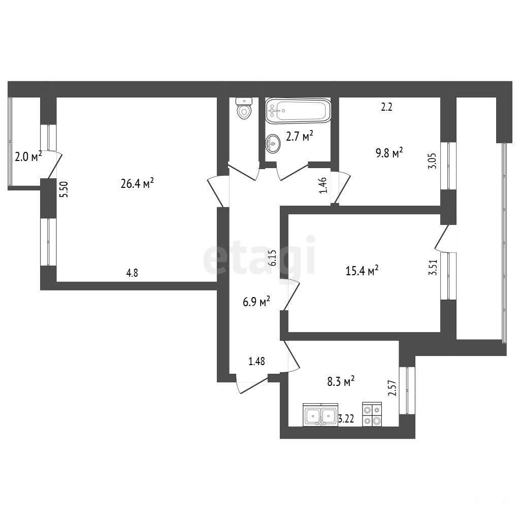 - 8.3 м²