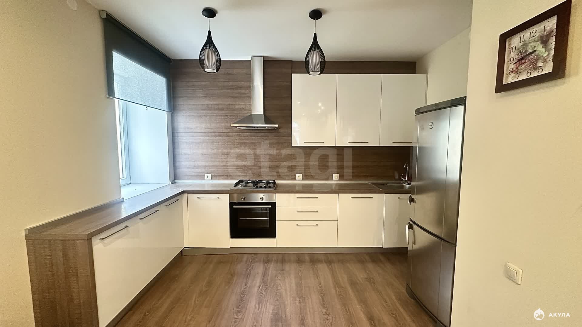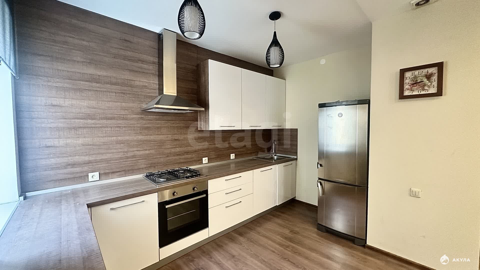 - Вся необходимая бытовая техника: варочная панель, духовой шкаф, вытяжка, холодильник.