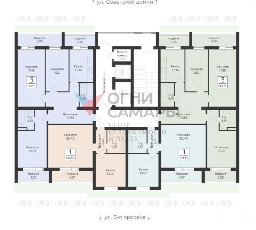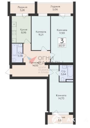 3х кмн квартира 80, 1 м.кв. Три раздельные комнаты 11.21+ 17, 95+ 14, 70. Кухня 9 м.кв. Три лоджии.