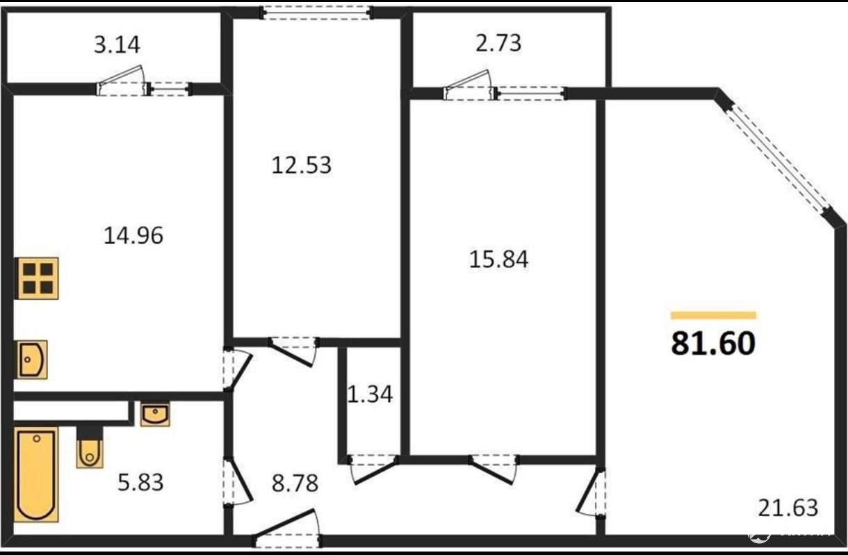Продаётся квартира с черновой отделкой от застройщика.