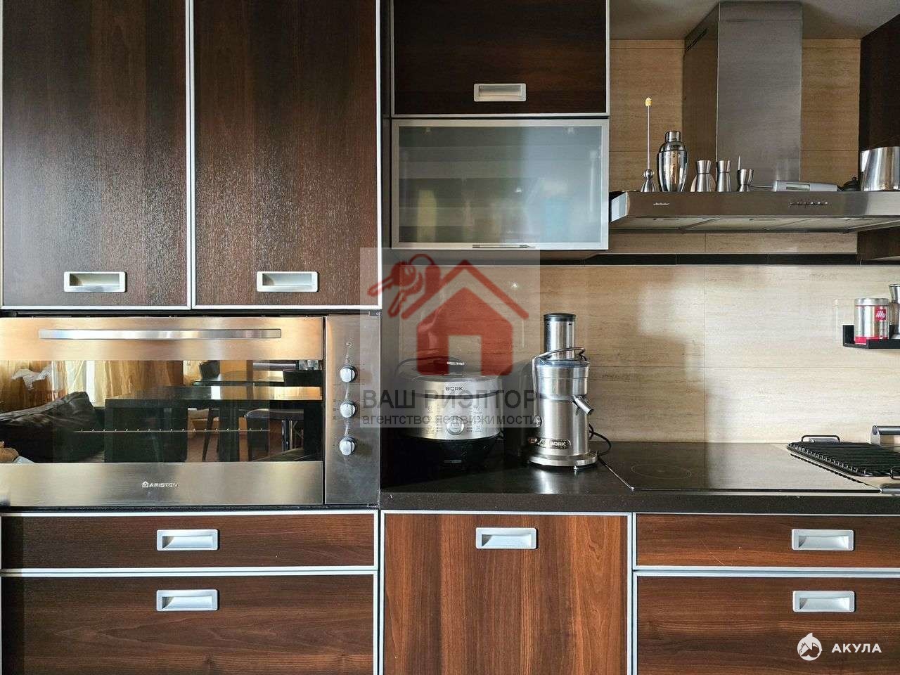 - кухня с техникой : измельчитель продуктов, духовой шкаф с функцией пароконвектомата и самоочистки, керамическая электроплита (две комфорки обычные и две индукционные), посудомоечная машина, гриль.