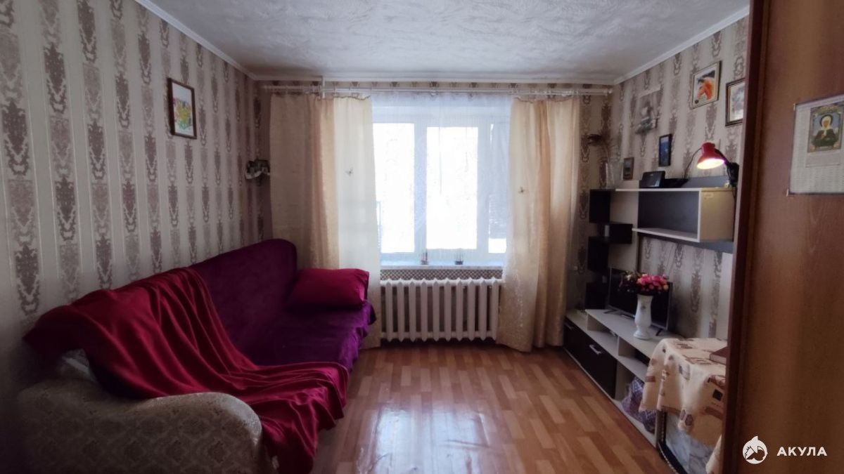 Жилая площадь квартиры составляет 14 кв.м., кухня 4 кв.м. Есть совмещенный туалет и ванная, а также отдельная просторная кухня, где можно готовить пищу. В квартире требуется ремонт, но мебель останется новым владельцам. Дом кирпичный, что гарантирует тепло и спокойствие.