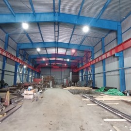 Производственное здание - общая площадь 2.200 кв.м. из них производственная площадь- 900 кв.м.( Ширина - 15м, Длина - 60м) Высота до фермы 10, 3м, до конька 11, 9м. Кранбалка на 3, 2т (во второй половине кранбалка без двигателя) АБК 3 этажа внутри здания, общей площадью 225 кв.м. С торца вплотную...