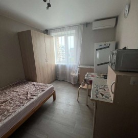 Сдаётся комната в общежитии на длительный срок. Есть вся мебель и техника для проживания (кровать, шкаф, стиральная машина, холодильник, стол и стулья). 8 этаж, очень тёплая комната, есть кондиционер. Сан.узел (туалет и душ) на 4 комнаты, кухня общая на весь этаж (но в комнате...