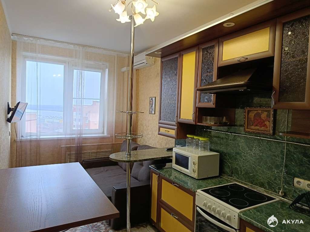 Уют и продуманный ремонт: кухня с барной стойкой для дружеских посиделок , стол с электрическим подъемником, диван, который превращается в полноценное двуспальное место. ТВ. Новый водонагреватель в ванной на случай отключения горячей воды, швабра паровая.