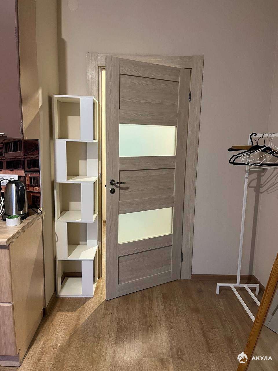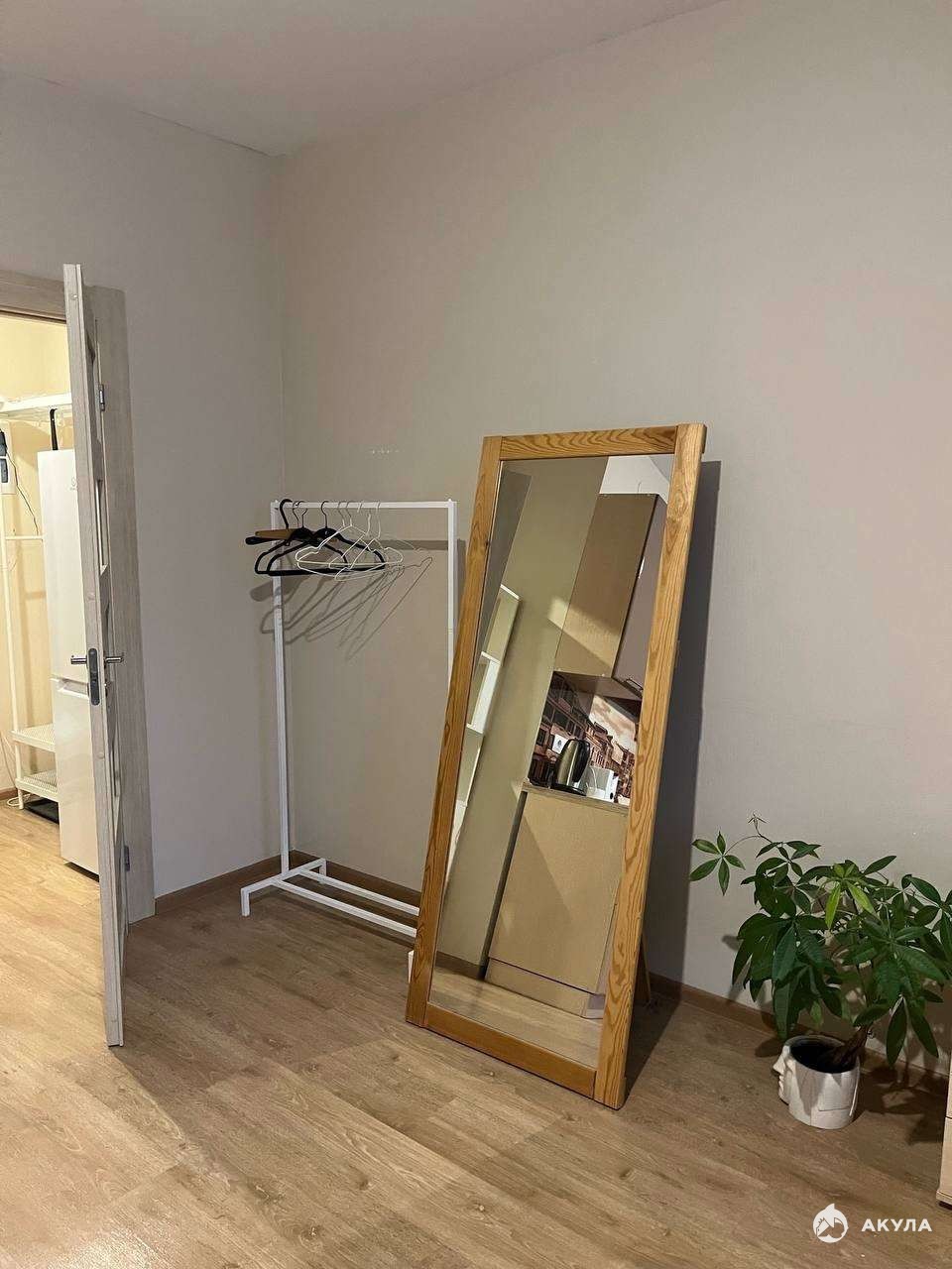 В квартире большое зеркало в пол, рейл для одежды, новый холодильник, угловой стеллаж, микроволновка, а также : индукционная печь, стиральная машина, холодильник, мультиварка, электрочайник, интернет 100мб/с, ортопедический матрас, некоторая посуда.