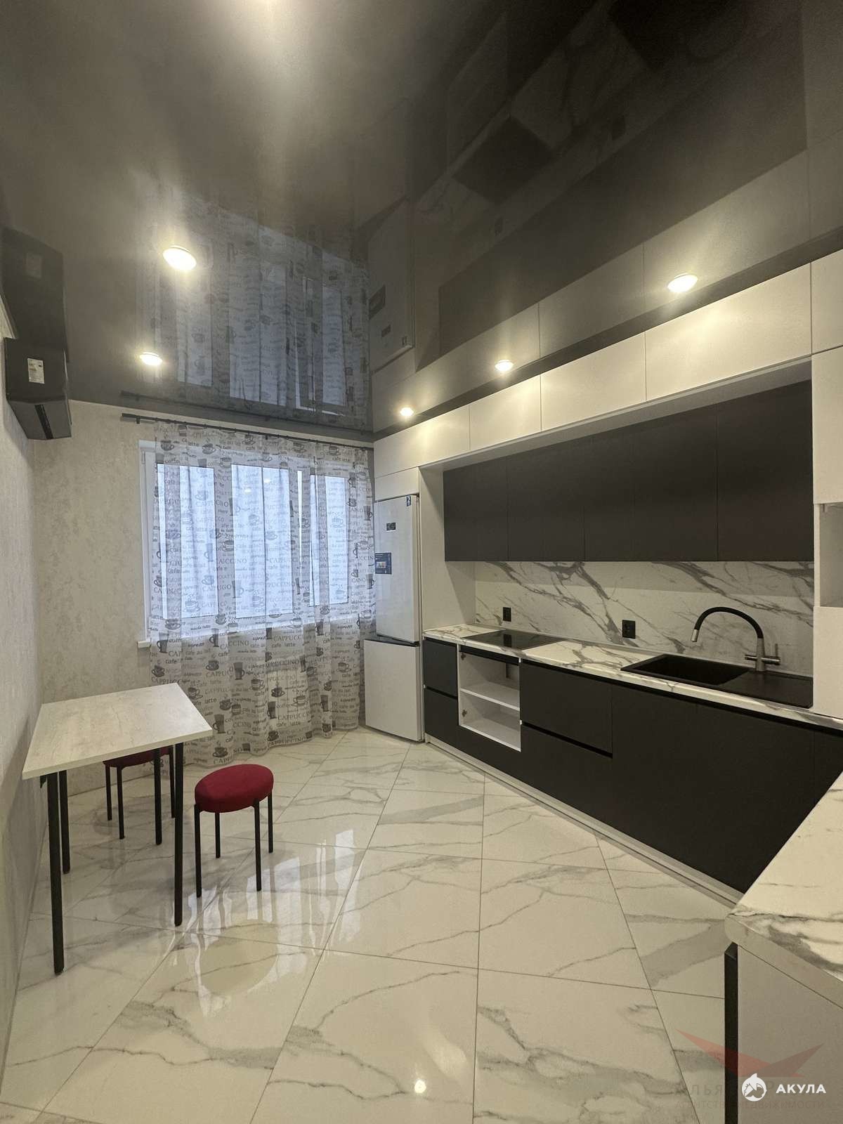 Уютная однокомнатная квартира с качественным дорогим ремонтом, мебелью и техникой. Есть всё необходимое для жизни - большая двухспальная кровать, кондиционеры, шкафы-купе, холодильник, стиральная машинка, телевизор, индукционная плита, полностью оборудованная ванная комната.