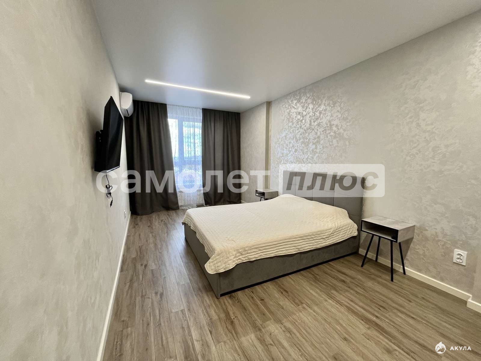 - Просторная спальня с новой двуспальной кроватью