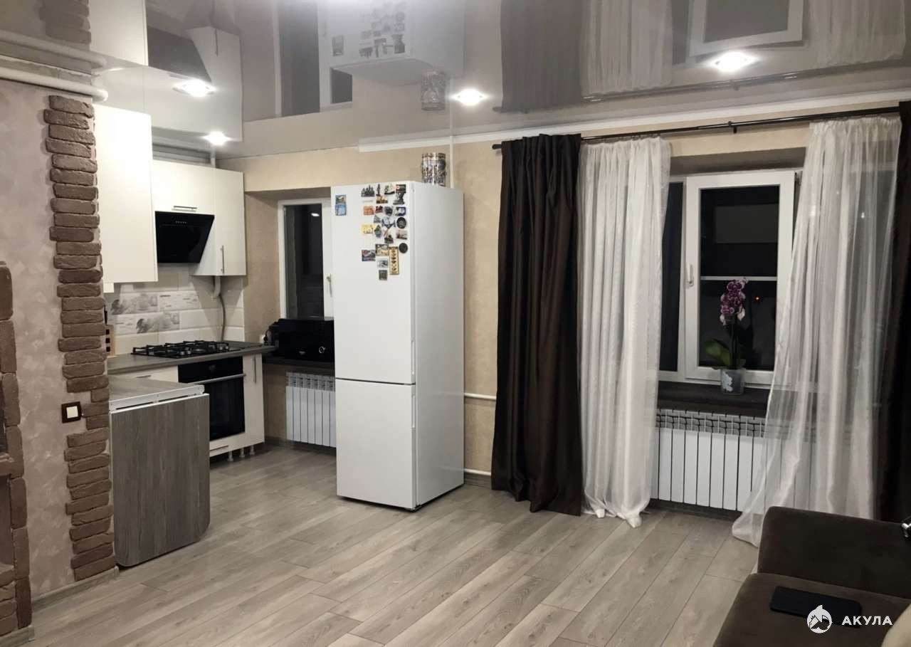 Кухня обьединена с комнатой, свой санузел.Удобная транспортная развязка.Адрес---Масленникова 40