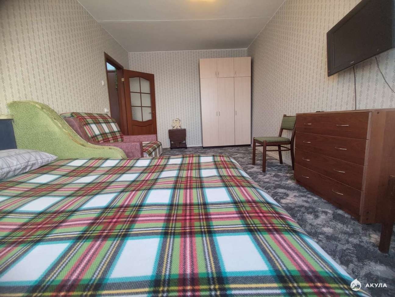 B квартирe имеется три спальных места - двуспальный и односпальный диван-кровати. Так же есть все необходимое для комфортного проживания. В квартире так же есть стиральная машина, утюг с гладильной доской, телевизор. На кухне имеется все необходимое для приготовления пищи.