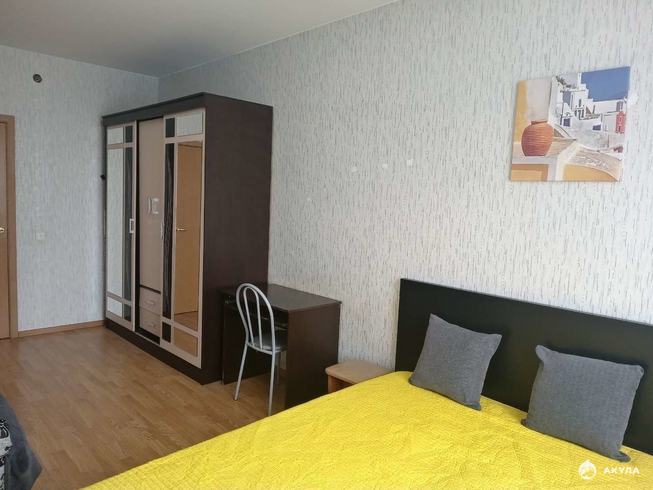 В квартире хорошая двухспальная кровать с ортопедическим матрасом. Диван. Стиральная машина. Горячая вода теплоцентраль + водонагреватель. Микроволновая печь. Холодильник. Чайник. Пылесос Шкаф в комнате. Встроенный шкаф в прихожей . НОВАЯ КУХНЯ, стол и стулья.
