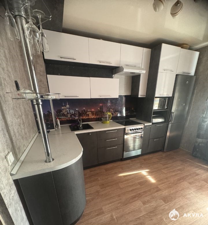 большая кухня со всей бытовой техникой и мебелью огромный совмещенный санузел с большой угловой ванной. большой коридор, оснащенный огромной гардеробной новой и угловым шкафом. зал имеет зонирование на комнату и детскуюк ровать и матрас новые и диван с деткой кроватью шкафом и столом. в квартире есть вся необходимая бытовая техника и мебель. сделан хороший и качественный ремонт, проведен интернет вайфай роутер стоитю