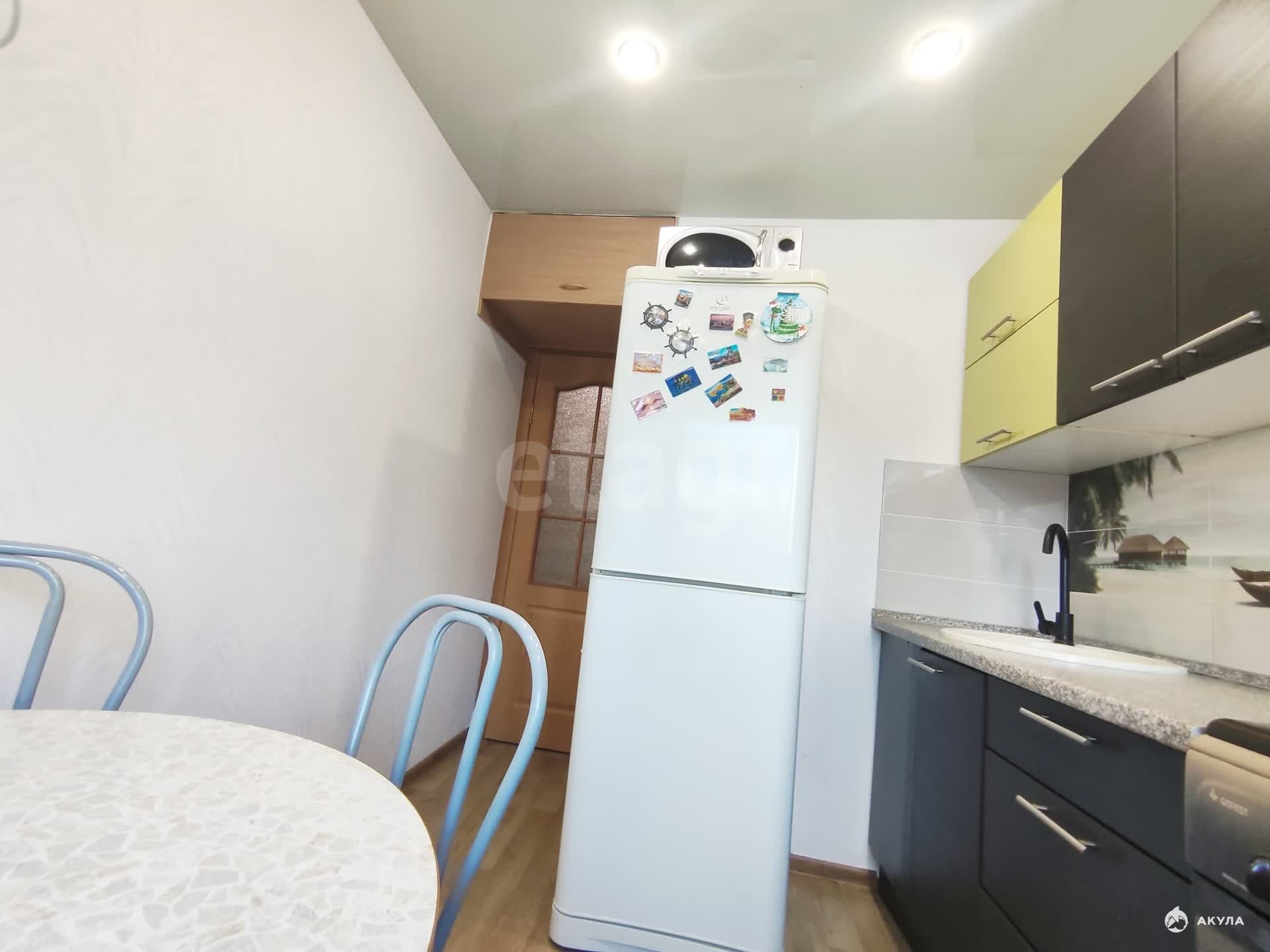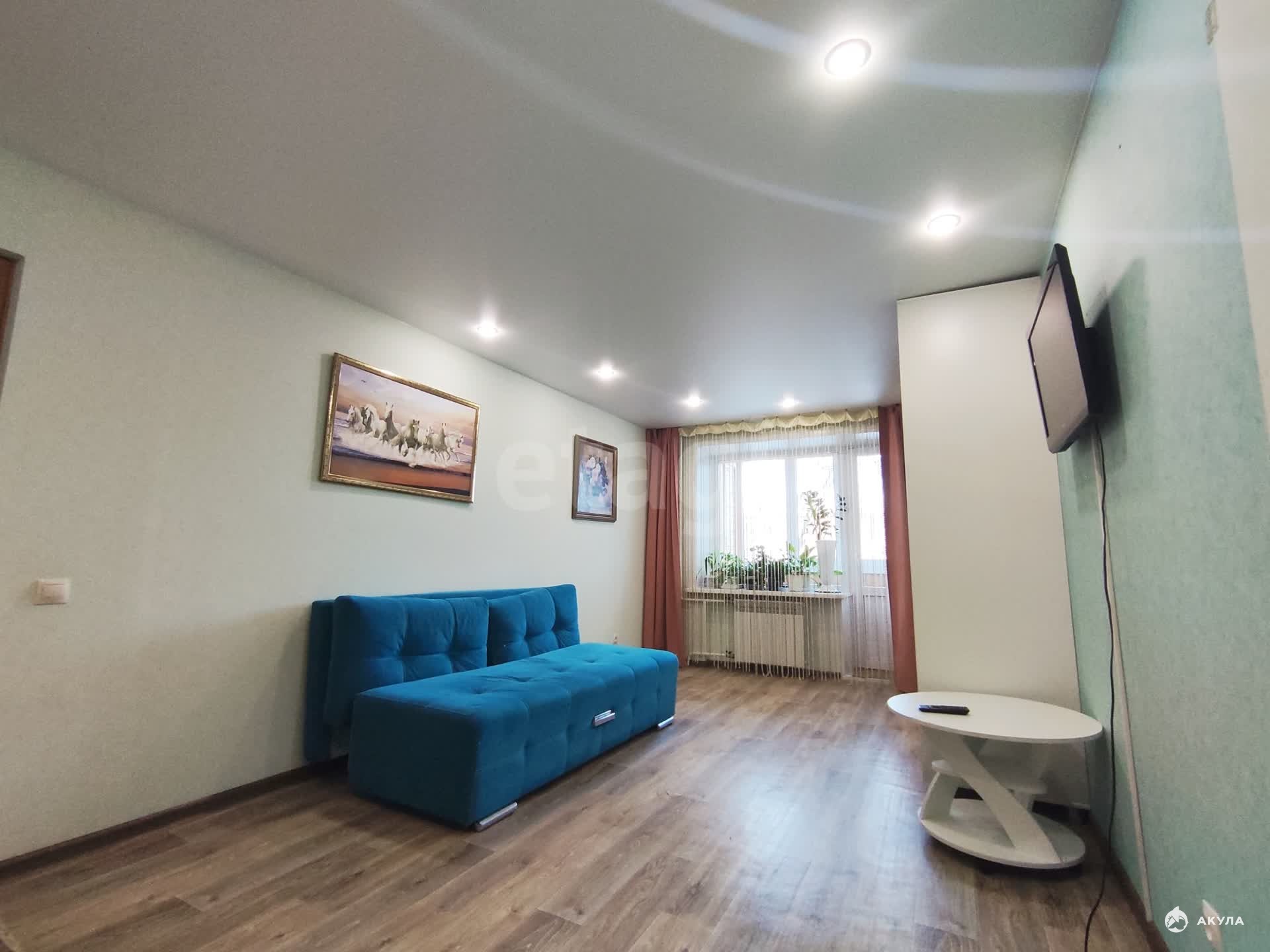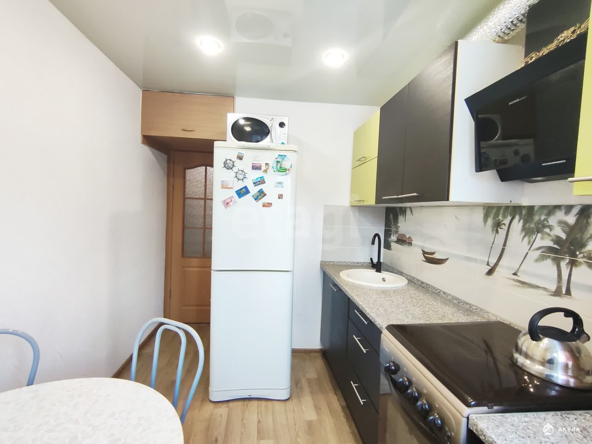 Квартира светлая и теплая, со свежим ремонтом. Квартира 35 квадратных метров, комната просторная. Квартира полностью укомплектована мебелью и техникой: есть два дивана, шкаф, вся необходимая техника - холодильник, микроволновка, стиральная машина.