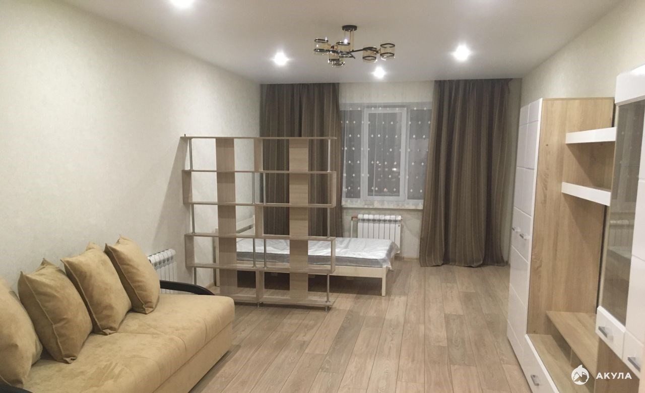 однокомнатная просторная квартира в новом, кирпичном доме с зонированием. мебель кровать из массива дерева с ортопедическим матрасом, дорогой диван на метал. каркасе, стеновой гарнитур, импортная техника, все в прекрасном новом состоянии утепленная и обшитая лоджия.через дорогу парк им. гагарина, во дворе многоуровневый паркинг. порядочной семье без детей и животных.