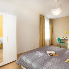 Что есть в квартире: высокоскоростной Wi‑Fi; посудомоечная машина; стиральная машина; вся необходимая мебель и бытовая техника. Если нужно-в комнату можно поставить компьютерный стол. Окружение: торговый центр — в шаговой доступности; фитнес‑клуб с бассейном — рядом; Парк...
