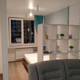 Сдаём уютную студию. В квартире никто не жил. Дизайнерский ремонт. Квартира находится в новом доме. Вся мебель и сантехника новая, сделан ремонт. В квартире есть Wi-Fi, СВЧ печь, холодильник, вертикальная стиральная машина, шкаф в коридоре