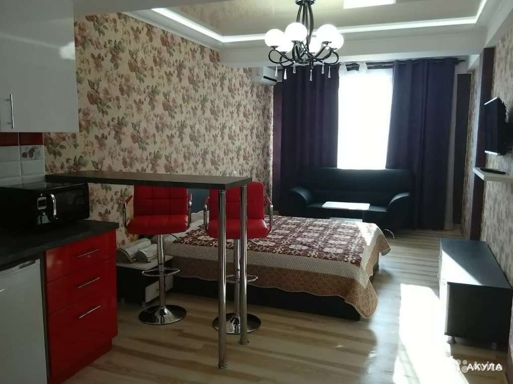 Небольшая по площади квартира-студия.Современный ремонт, имеется все необходимое для проживания.