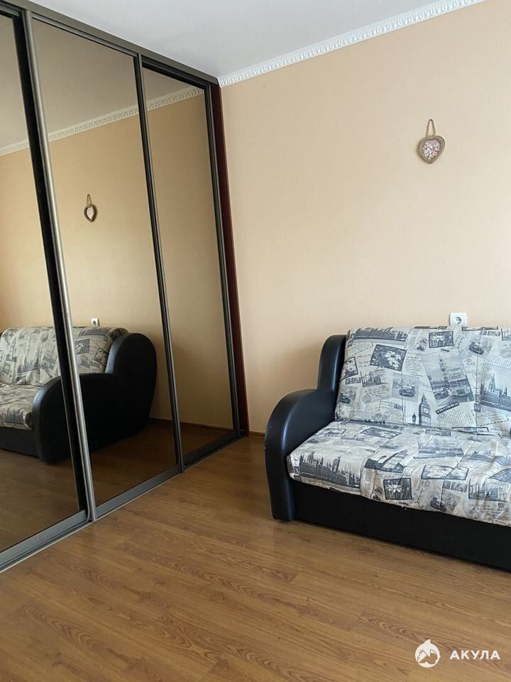 Вторая просторная комната, с раскладывающимся диваном, большой вместительный шкаф-купе, письменный стол. Напольное покрытие водостойкий прочный ламинат