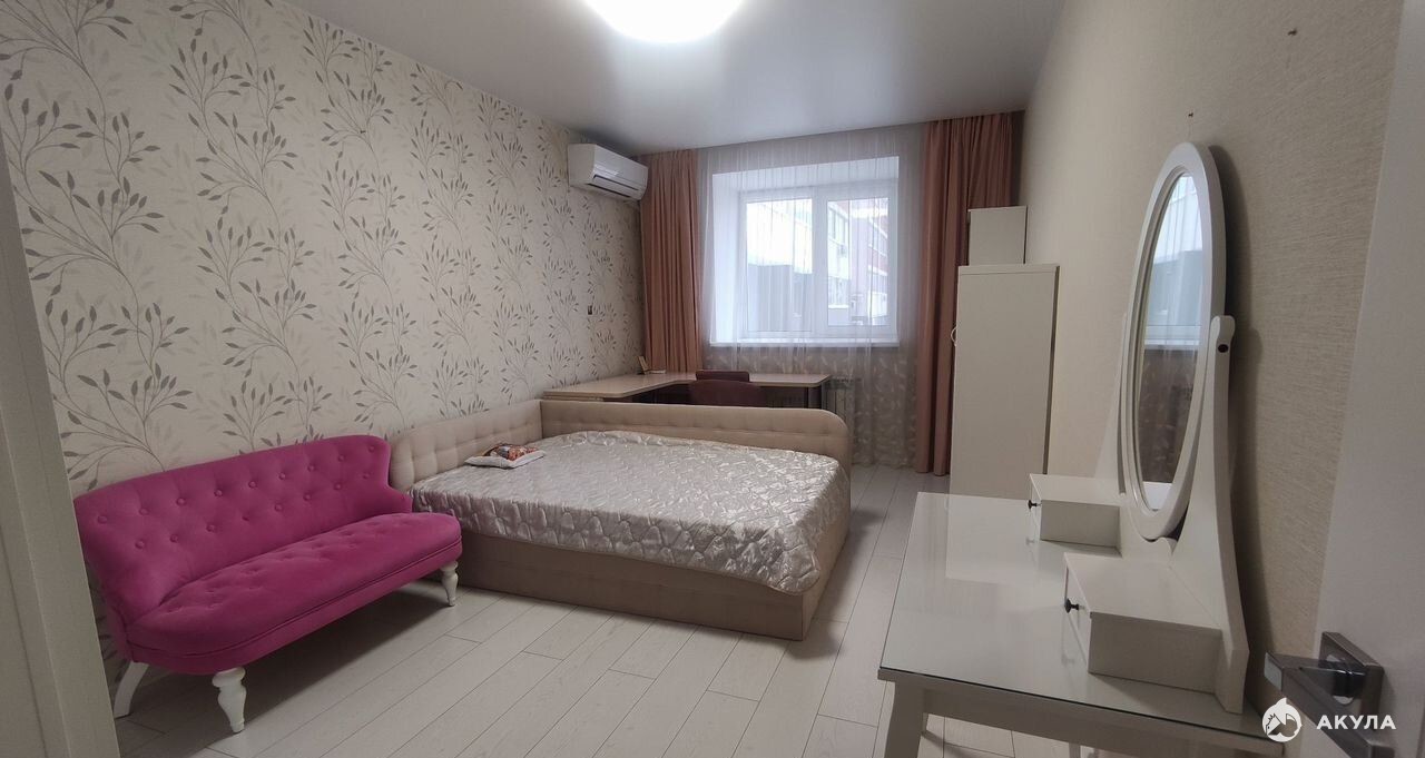 Сдаётся квартира на длительный срок.Евроремонт и изолированные комнаты. — Кондиционер — комфорт в любое время года. — Большая лоджия, которую можно использовать как зону для отдыха или хранения. — Вся необходимая техника: на кухне есть холодильник, СВЧ-печь и всё для готовки. В санузле — стиральная машина и современная сантехника. — Полная меблировка: в гостиной — диван и шкаф, в спальнях — кровати и шкафы. Яркая и уютная детская комната. — Дополнительный комфорт: гардеробная для хранения
