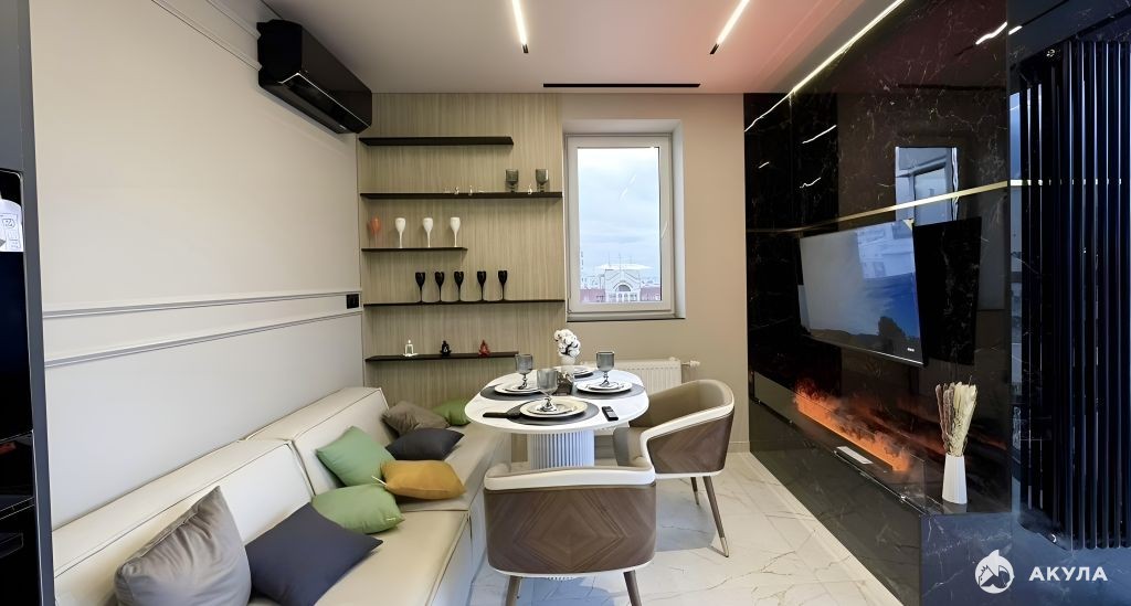 Новая дизайнерская квартира в центре города. "Евротрёшка": кухня-гостиная, 2 спальни. Панорамные окна, вид на Волгу. Лифт спускается в паркинг.