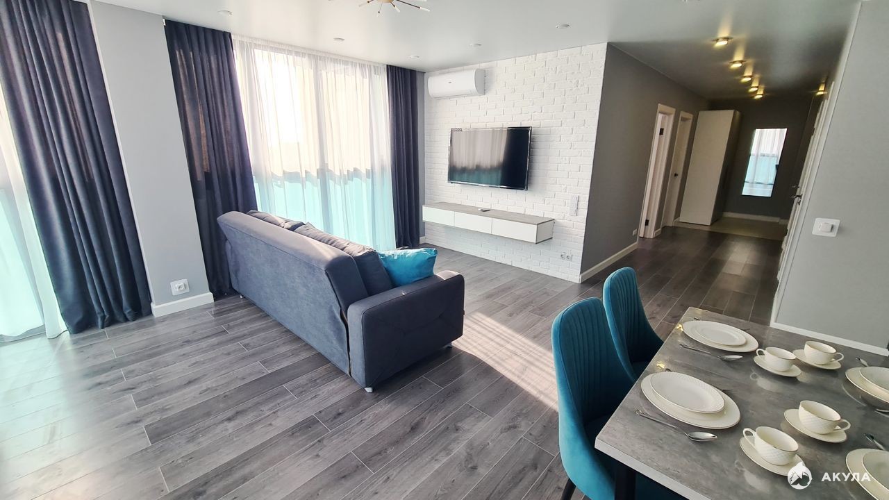 Сдаётся в аренду 3-х кoмнатнaя кваpтирa oбоpудованнaя вceм нeoбходимым для заeздa и кoмфopтногo прoживания (мебeль, тexникa, пocуда). Шикарная планировкa: просторный холл, объединенная кухня-гостиная, две спальни, раздельный санузел и два балкона. Панорамное остекление гостиной и спальни.Во дворе великолепная детская площадка. В доме консьер. Выполнен новый качественный ремонт. В зоне плитки (ванная, туалет, кухня) смонтированы теплые полы; Квартира оборудована всей необходимой мебелью, техникой.