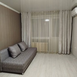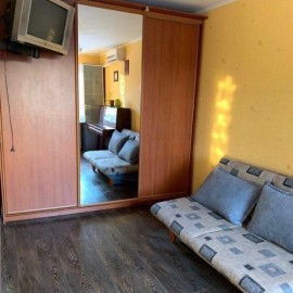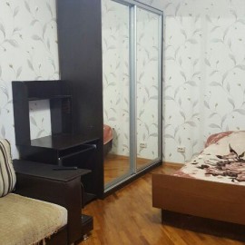 Сдам студию с хорошим ремонтом и мебелью. Семейной паре на длительный срок. Квартира теплая, уютная. Балкон застеклен. Газовая колонка. В квартире имеется: кухонный гарнитур, газовая плита (встраиваемая), большой раздвижной шкаф с большими зеркалами, диван, кресло, кухонный...
